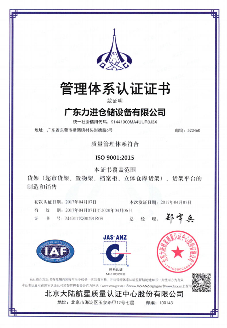 ? 2014年3月 成立香港力進(jìn)倉儲(chǔ)設(shè)備有限公司,致力開拓海外市場。